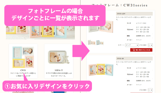 商品の一覧からお好みのフレームやパネルを選んでください。
