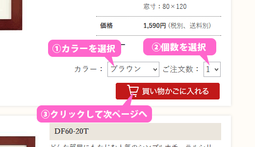 各商品の「買い物かごに入れる」ボタンを押すと、