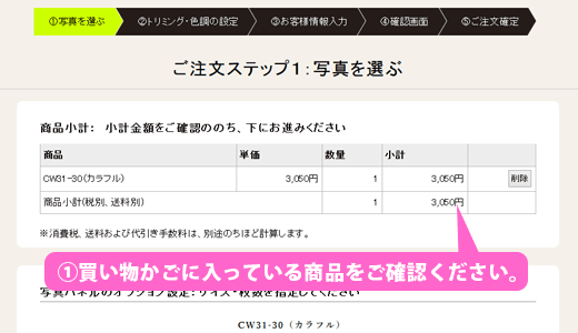 「ご注文ステップ1:写真を選ぶ」ページに移動します。