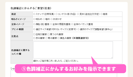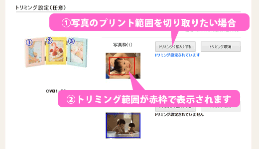 「ご注文ステップ2:トリミング・色調に関する設定(任意)」ページ